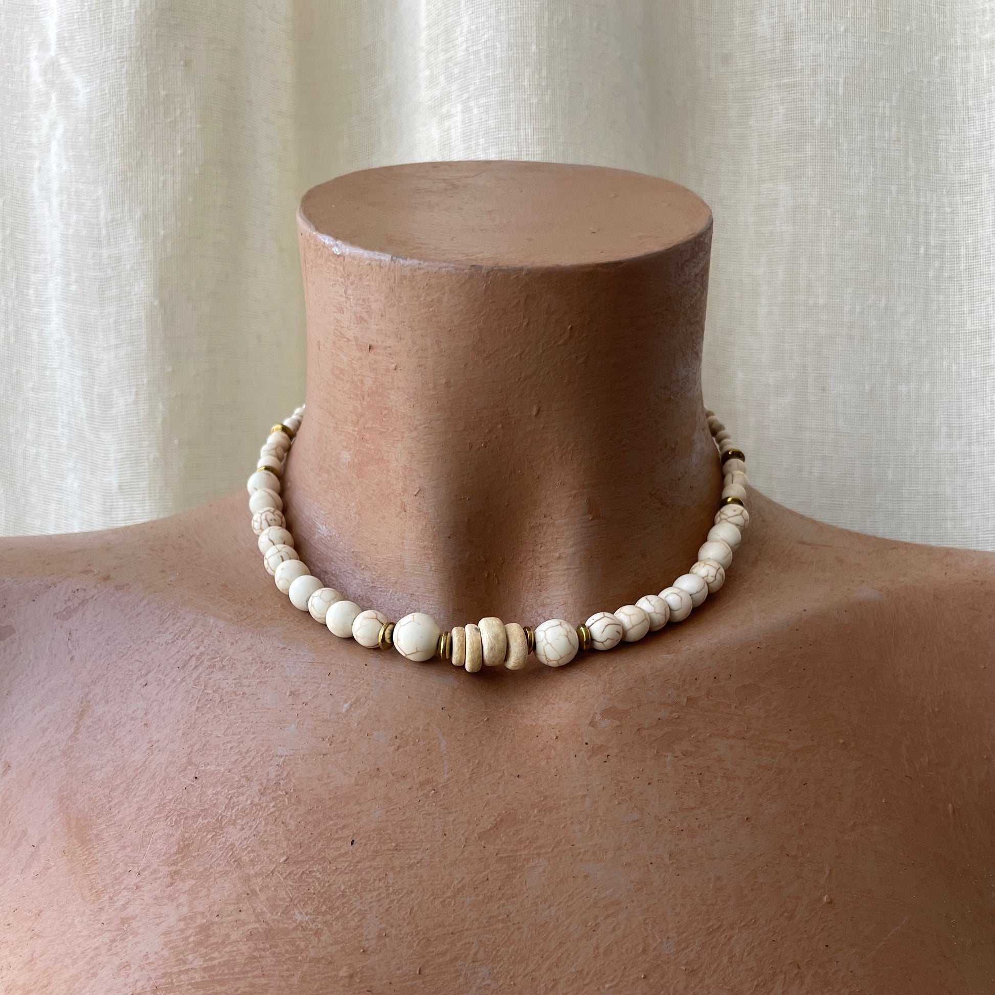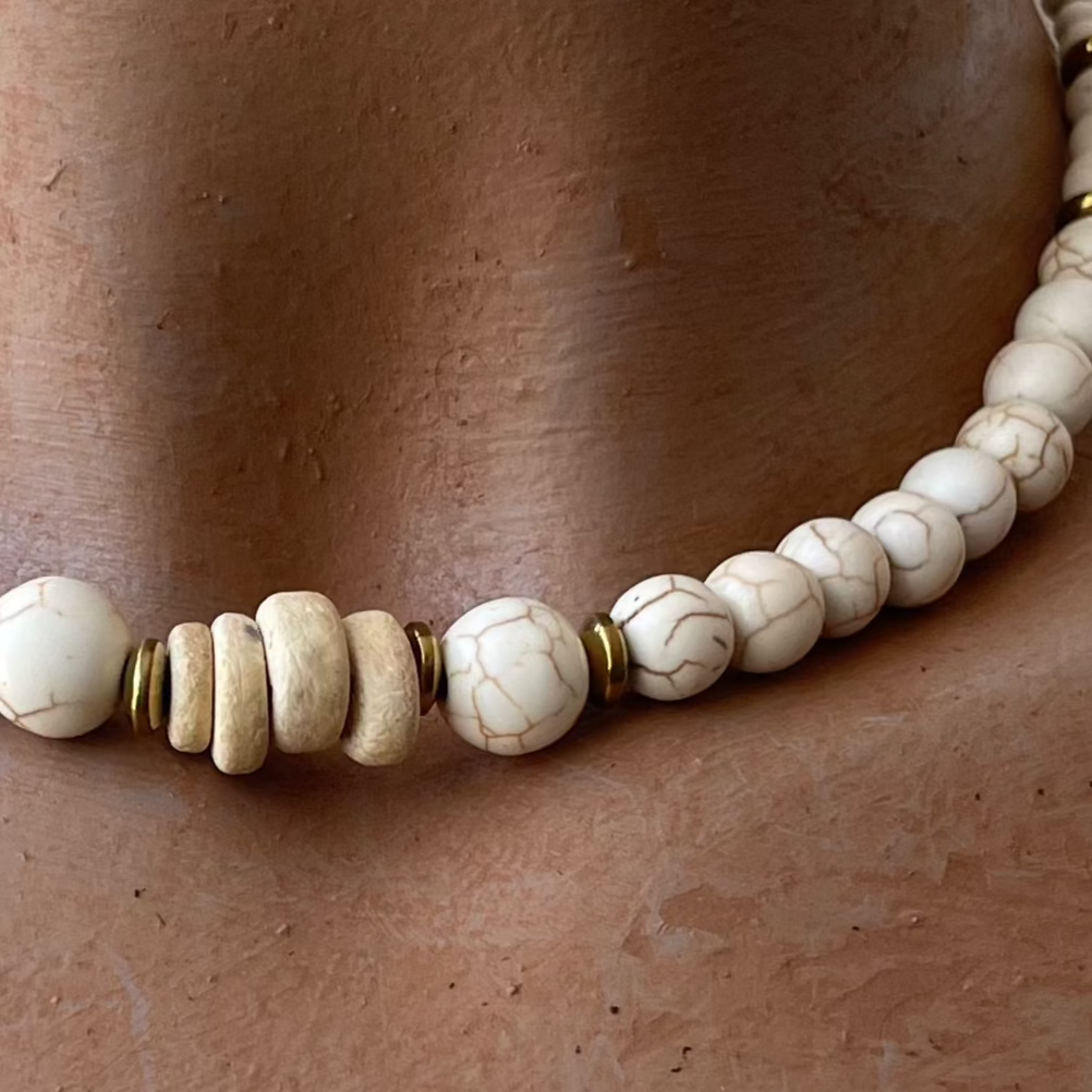 The Earth Choker. An organic mix of Coconut, Faux Ivory, Gold Hematite, Light Pine Wood.
